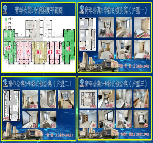 青年公寓于2021年12月開(kāi)工建設(shè),共建設(shè)保障性租賃住房1450套,其中成套租賃住房(白領(lǐng)公寓)154套,精裝修交付;非成套租賃住房(藍(lán)領(lǐng)公寓)1296間,毛坯交付:可容納約7900人入住,同時(shí)配建一棟四層約1.8萬(wàn)平方米的商業(yè)樓和2.6萬(wàn)平方米地下車(chē)庫(kù),共設(shè)置機(jī)動(dòng)車(chē)位781個(gè)。3號(hào)樓(白領(lǐng)公寓)于2025年1月1日正式啟用,對(duì)外出租。