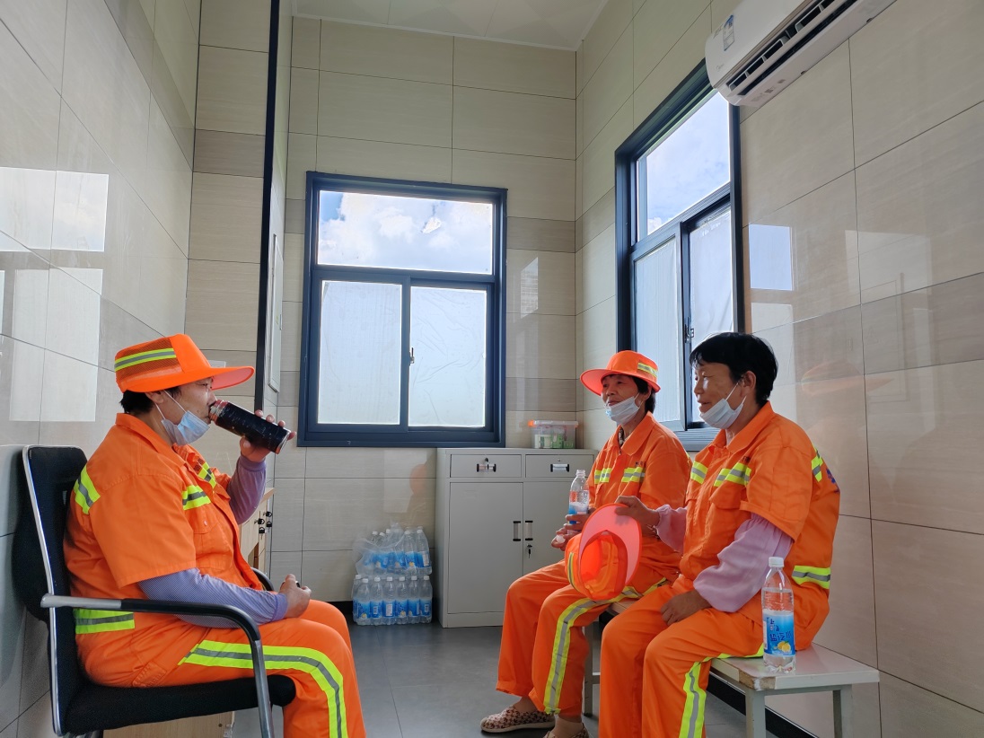 “清涼驛站”全開放,避暑納涼有去處。配有空調(diào)、防暑降溫藥品、飲用水的31座公共廁所的休息室、管理間全部對外開放,工人作業(yè)間歇,可以隨時到“驛站”避暑納涼,讓一線工人在酷暑中享受一絲清涼。