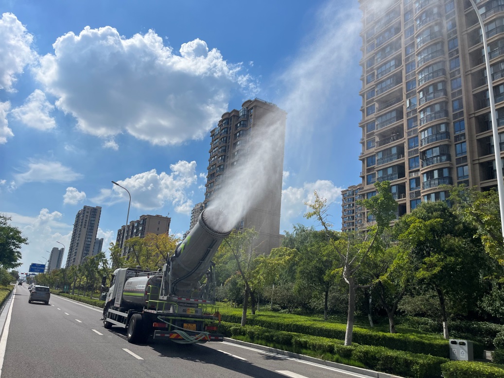 加大機械化作業(yè),降低工人作業(yè)強度。調(diào)整機械作業(yè)方式,啟動“平面灑水、立體霧化”夏季作業(yè)模式,采用灑水車、霧炮車、洗掃車相結(jié)合的方式,增加道路灑水抑塵、清掃頻次,降低工人作業(yè)強度。