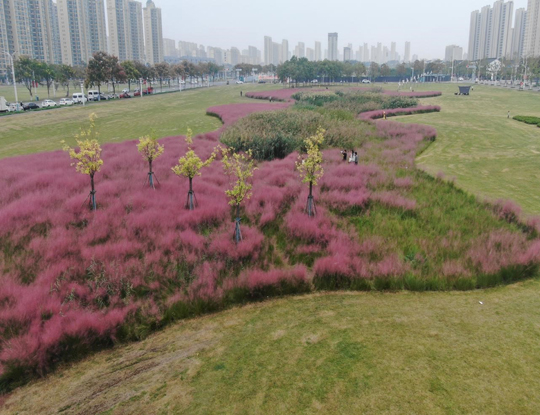 在中央商區(qū),成片的粉黛亂子草正值最佳觀賞期,云霧般的粉色花穗在陽光下輕盈搖曳,已成為市民爭相打卡的“網(wǎng)紅”景點(diǎn)。“粉黛亂子草觀賞性雖高,養(yǎng)護(hù)卻需格外精心。”建發(fā)公司相關(guān)負(fù)責(zé)人介紹,為維持其最佳觀賞狀態(tài),園區(qū)采取了分區(qū)、分時(shí)的精細(xì)化養(yǎng)護(hù)策略。盛花期期間,養(yǎng)護(hù)人員會(huì)精準(zhǔn)控制澆水量,避免過多水分影響花穗形態(tài);雨季則及時(shí)排水,嚴(yán)防積水導(dǎo)致爛根。同時(shí),還安排了專人全天巡視,引導(dǎo)游客在指定區(qū)域文明觀賞,并對(duì)局部受損區(qū)域?qū)嵤?ldquo;點(diǎn)對(duì)點(diǎn)”修復(fù),確保每一株粉黛都能以最美姿態(tài),展現(xiàn)秋天的溫柔與浪漫。