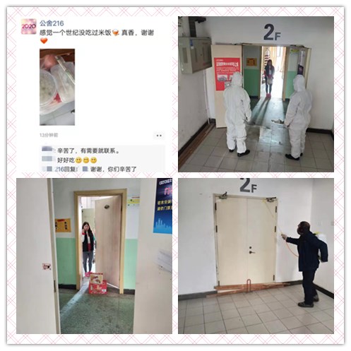 建發(fā)公司按照園區(qū)防疫工作領(lǐng)導(dǎo)小組要求,為確保入住員工的生命健康安全,及時啟動應(yīng)急預(yù)案,對進(jìn)入人員體溫檢測,小劉的幫扶小組,每天通過微信、電話詢問小劉的身體情況,及時了解生活需求,免費(fèi)提供一日三餐,幫其代購生活用品,并在精神上進(jìn)行鼓勵支持,幫助排解身心壓力,為這次新冠病毒肺炎疫情控制,構(gòu)筑了一道聯(lián)防聯(lián)治的嚴(yán)密防線。