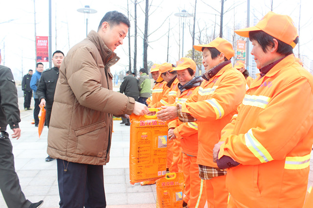 1月18日上午,園區(qū)黨工委委員、管委會(huì)副主任、規(guī)劃建設(shè)局局長(zhǎng)許紹杰帶隊(duì)慰問了奮戰(zhàn)在一線的城市維護(hù)作業(yè)人員,向他們送上了春節(jié)的問候。